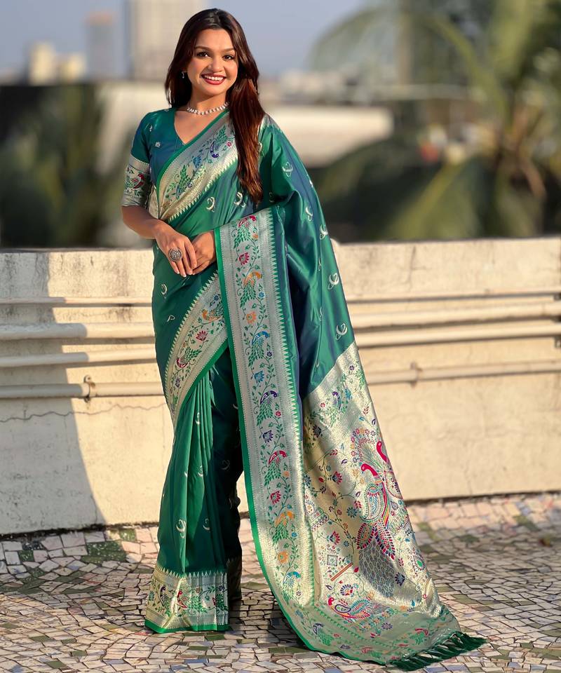 | • | Saree | : | Color- Green / Fabric- Paithani Silk |