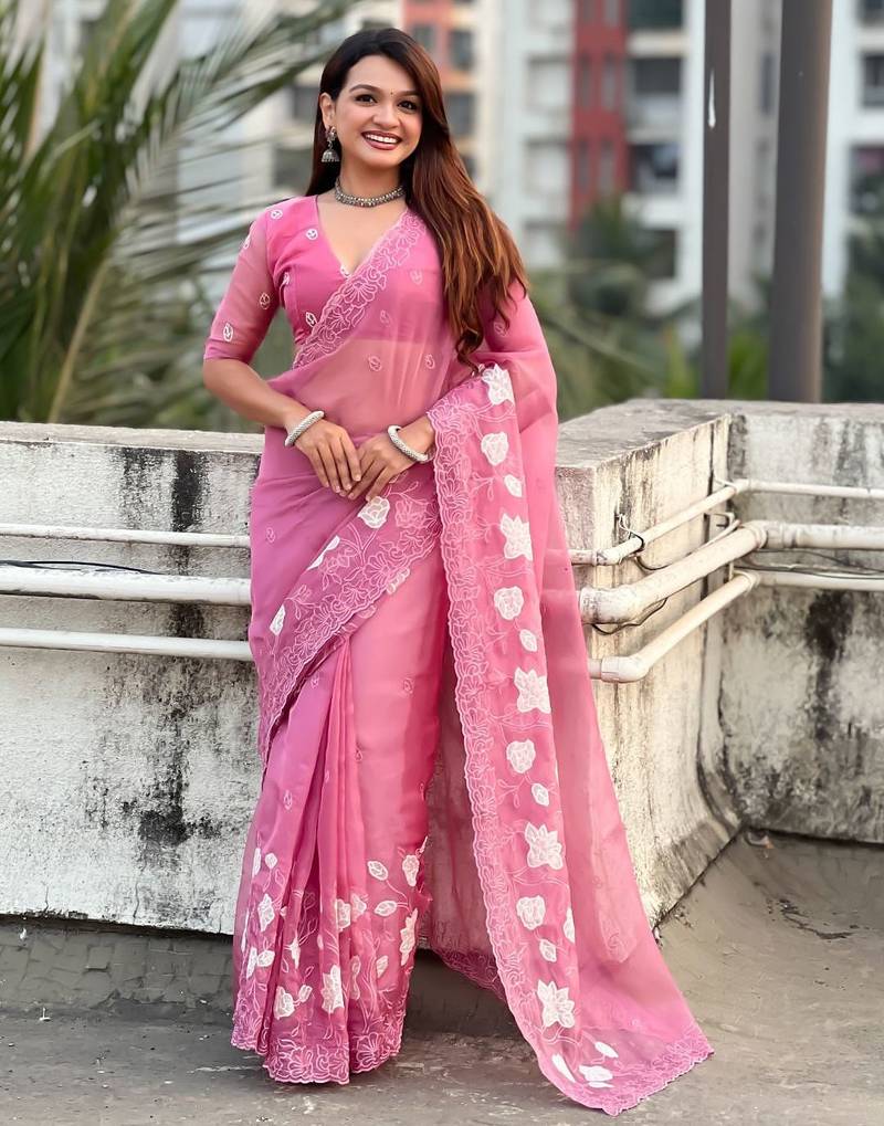 | • | Saree | : | Color- Pink / Fabric- Art Silk |