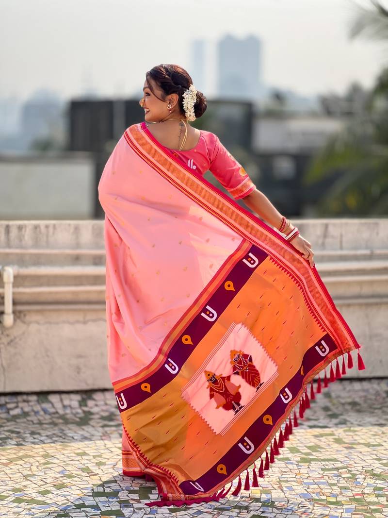 Multicolor tilak zari woven soft art silk traditional paithani saree with unstitched blouse