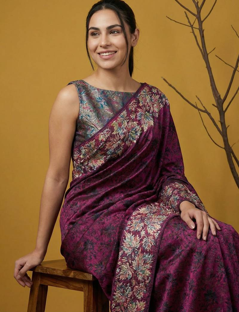 Soft art silk floral printed saree with rainbow zari woven pallu and contrast blouse