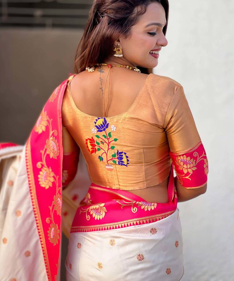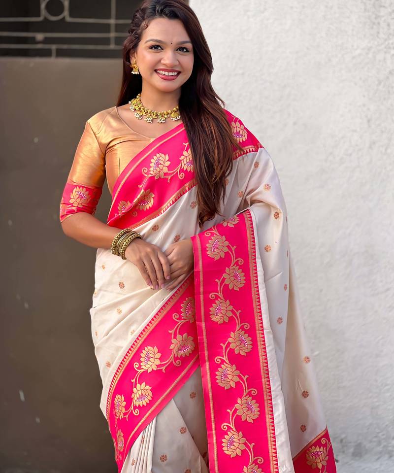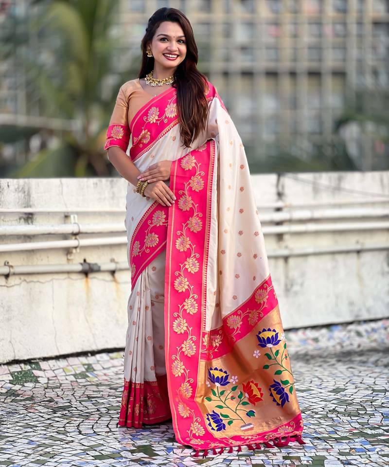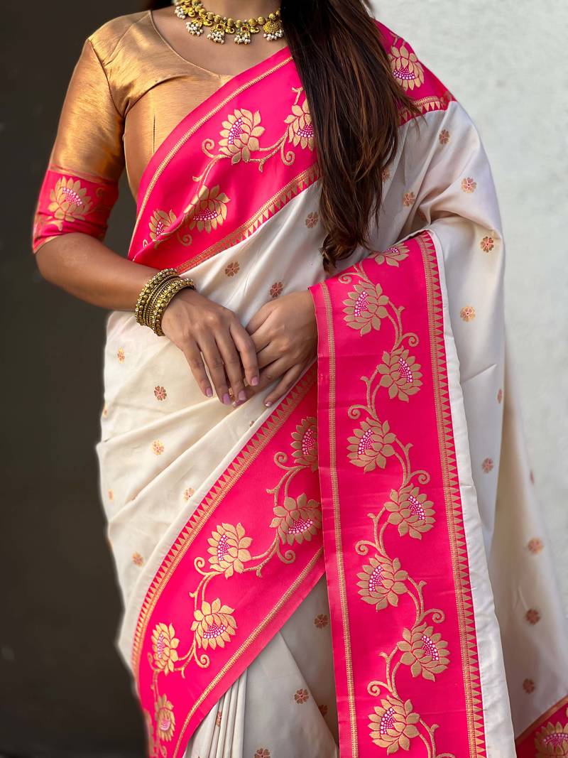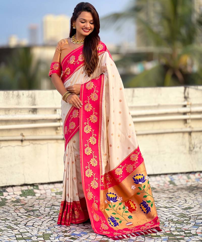 Soft silk lotus paithani zari woven saree