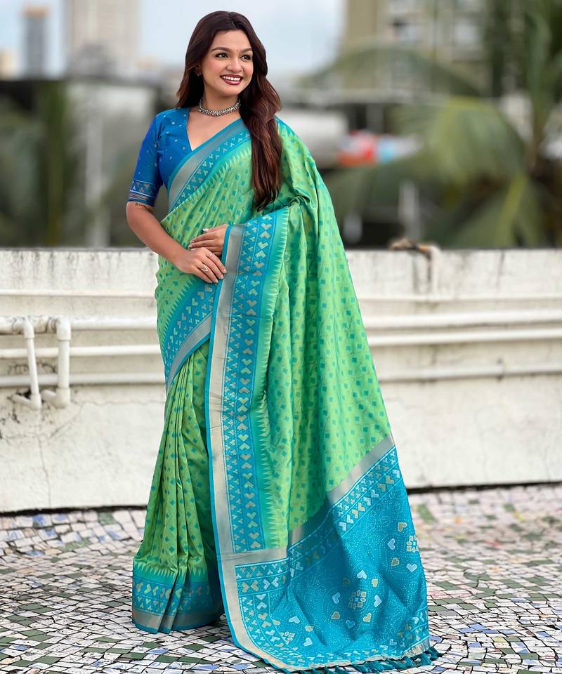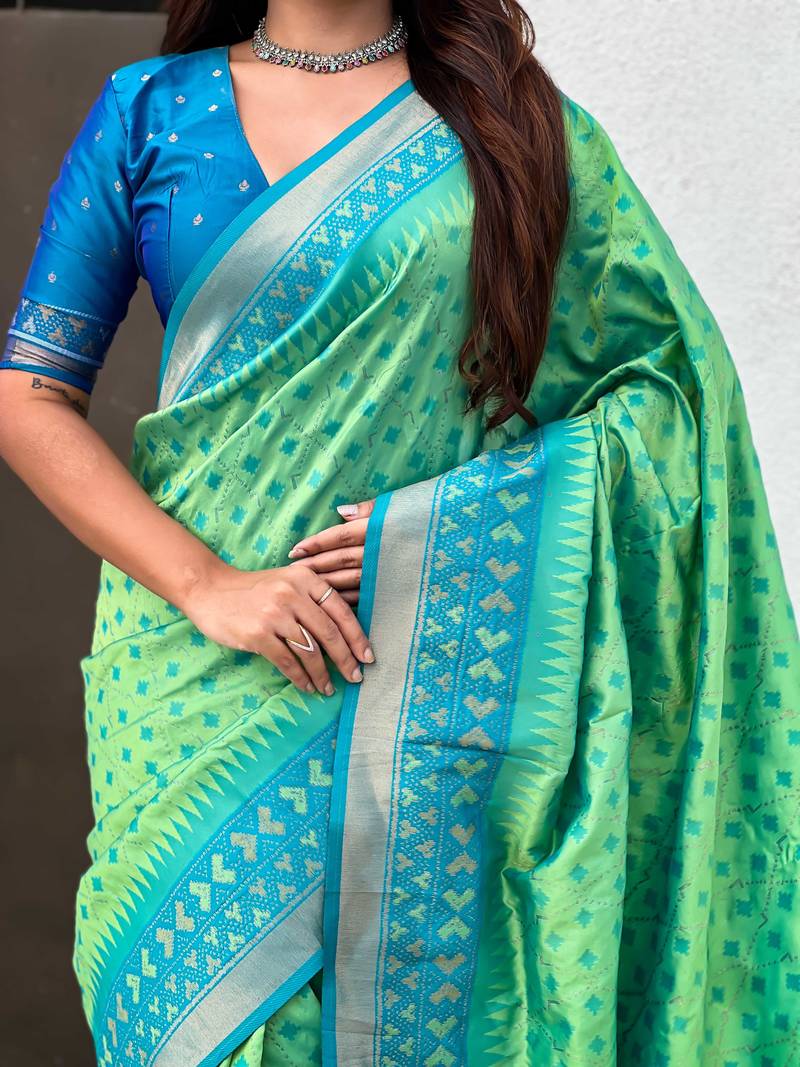 Product Name | Soft Silk Zari Woven Patola Saree With Contrast Bandhani Weaves | |