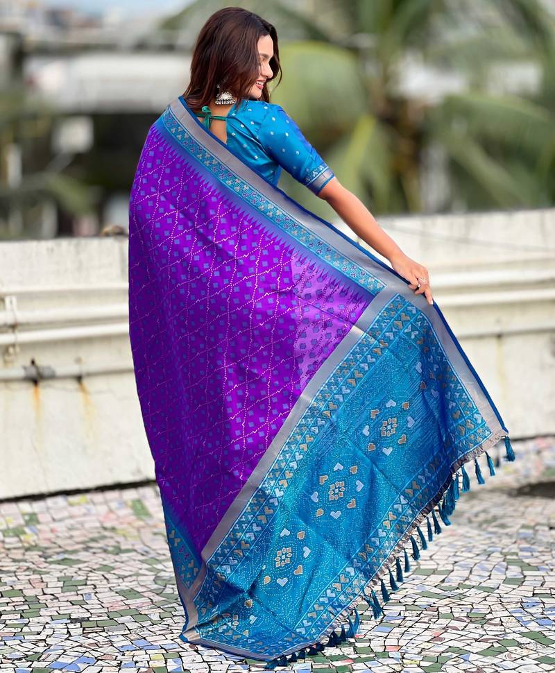 Product Name | Soft Silk Zari Woven Patola Saree With Contrast Bandhani Weaves | |