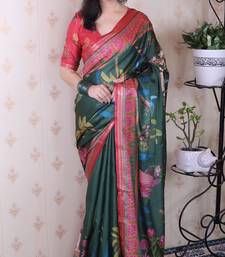 Soft tussar silk blend pichwai traditional printed zari woven saree