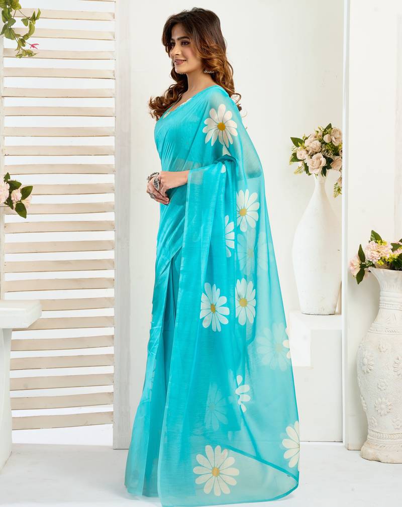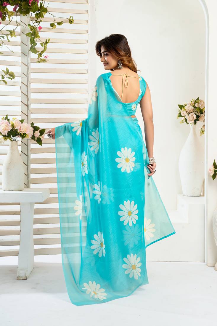 | Product Name | Aqua Blue Linen Floral Printed Ready To Wear Saree | |