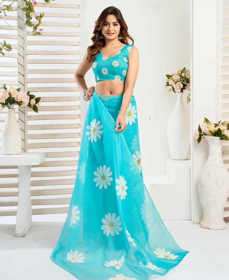 | Product Description | Brighten Your Style Story With This Aqua Blue Linen Floral Printed Ready To Wear Saree A Serene And Stunning Piece From Elora Fashion’s Women’s Ethnic Wear Collection. The Calming Aqua Blue Base Adorned With Delicate Floral Motifs Makes This Saree One Of Mirraw’s Most Popular Picks, Instantly Catching Eyes On The Homepage And In Style Searches. It’s A Trending Favorite For Everyday Elegance, Festive Gatherings, Or Those Special Moments When You Want To Shine.