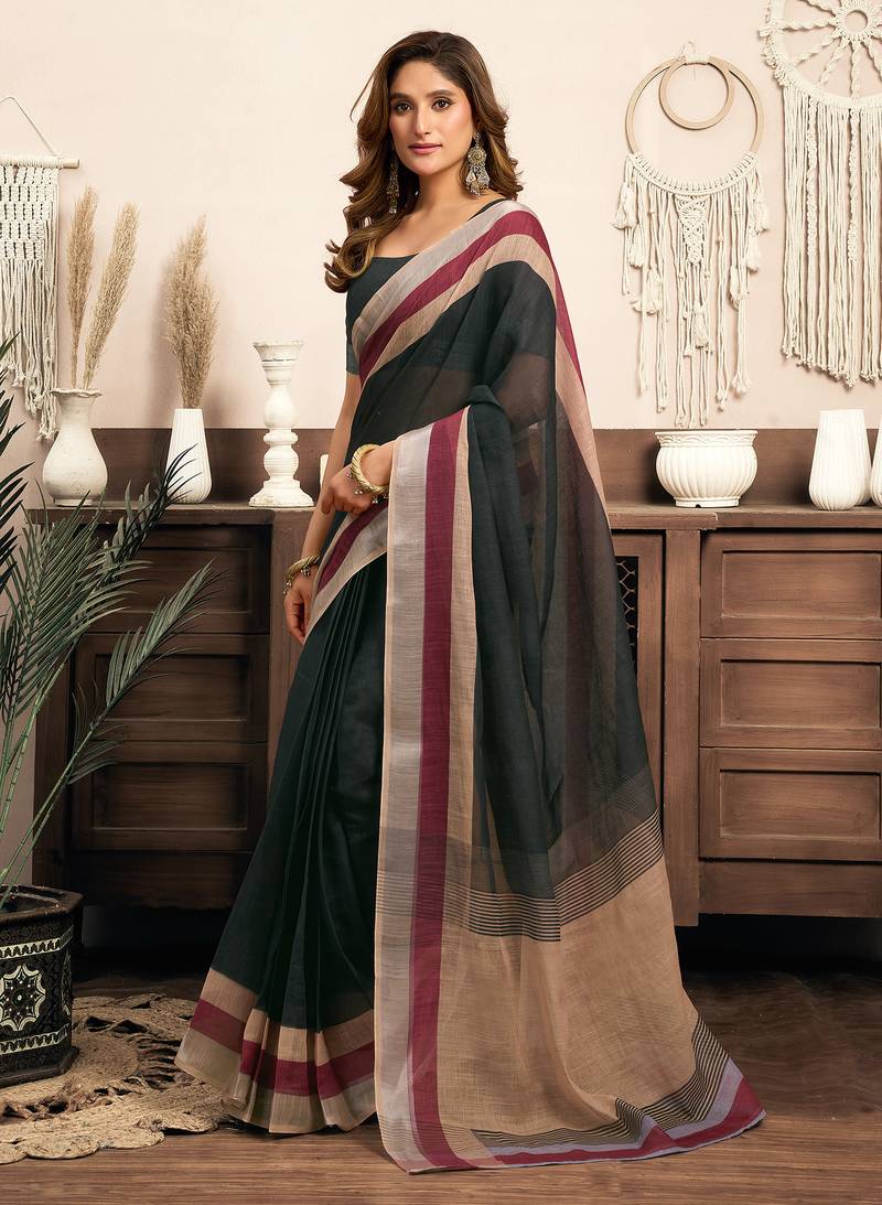 | Product Name | Green Linen Solid Printed Ready To Wear Saree With Pocket | |