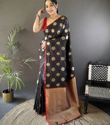 Black soft silk blend checked & circular motifs zari weaving banarasi saree