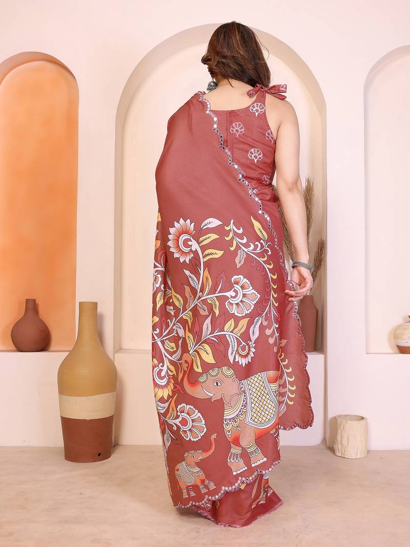 | Product Name | Brown Manipuri Kalamkari & Digital Print Saree With Mirror Work Border | |