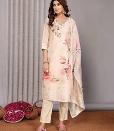 Cream chanderi floral printed straight kurta set