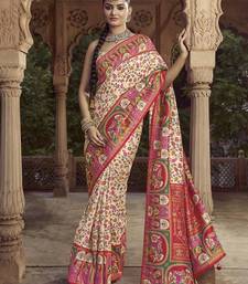 Step Into The Spotlight With This Trending Masterpiece And Elevate Your Ethnic Wardrobe Instantly. Explore Mirraw’s Curated Collection Of Top Ranking, Trending, And Most Popular Sarees, And Let The Cream Floral Zaal Print Patola Saree Redefine Everyday Elegance With Contemporary Flair And Effortless Charm.