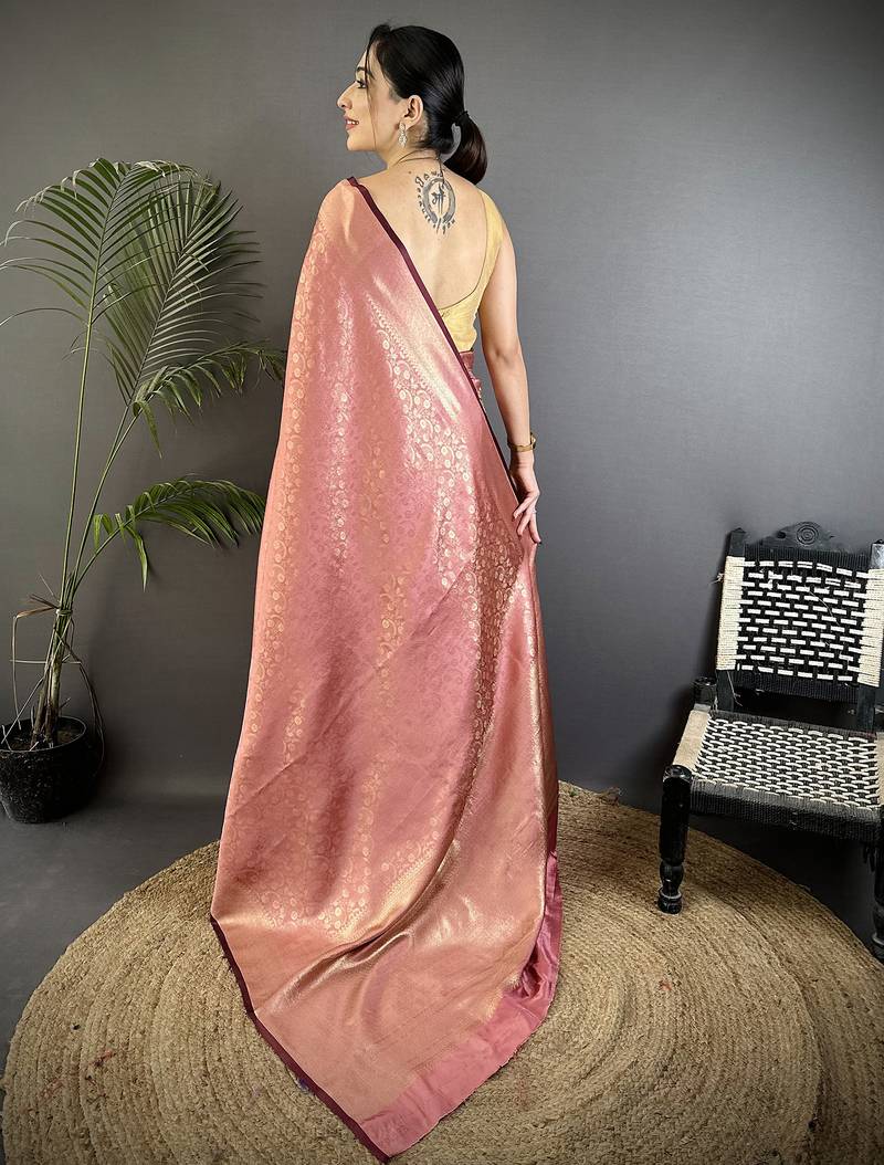 | Product Description | Elevate Your Ethnic Wardrobe With This Dusty Pink Soft Satin Silk Banarasi Saree, A Perfect Blend Of Tradition And Modern Elegance. Adorned With Delicate Floral And Paisley Motifs, This Saree Is A Top Ranking Mirraw Design, Ideal For Weddings, Festive Occasions, Or Any Celebration Where You Want To Shine. Its Soft Satin Silk Fabric Drapes Effortlessly, Making It A Bestseller In Women’s Ethnic Wear For Those Who Love Style Without Compromising Comfort.