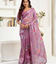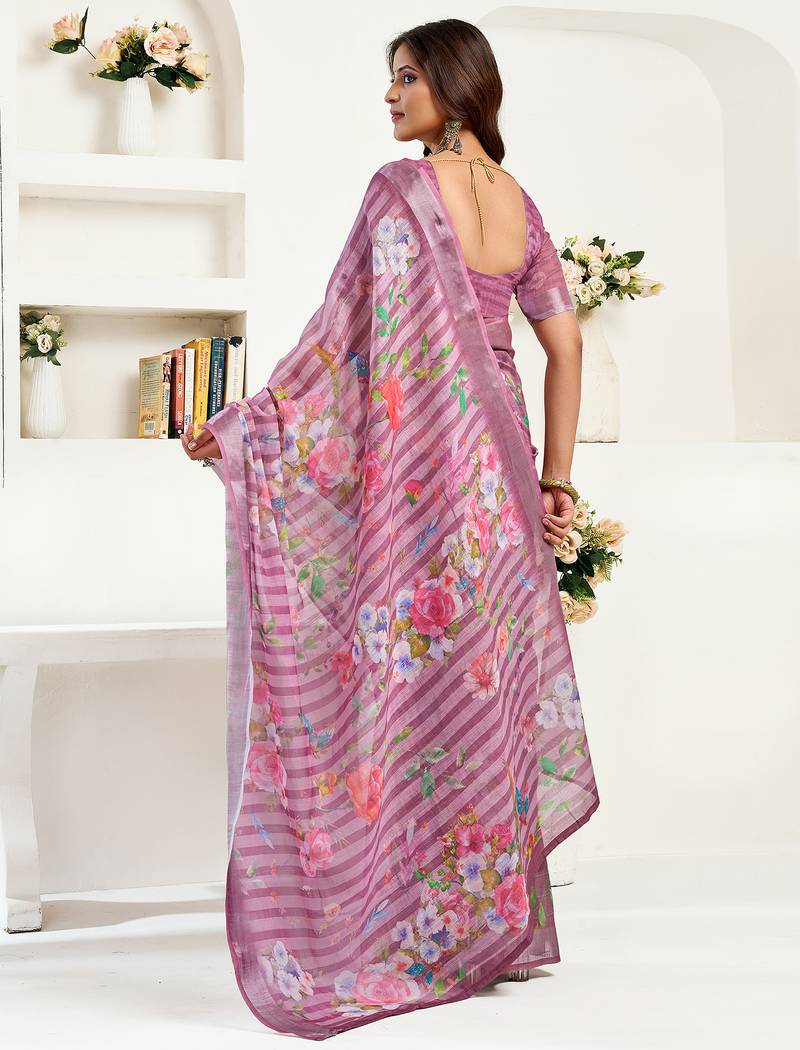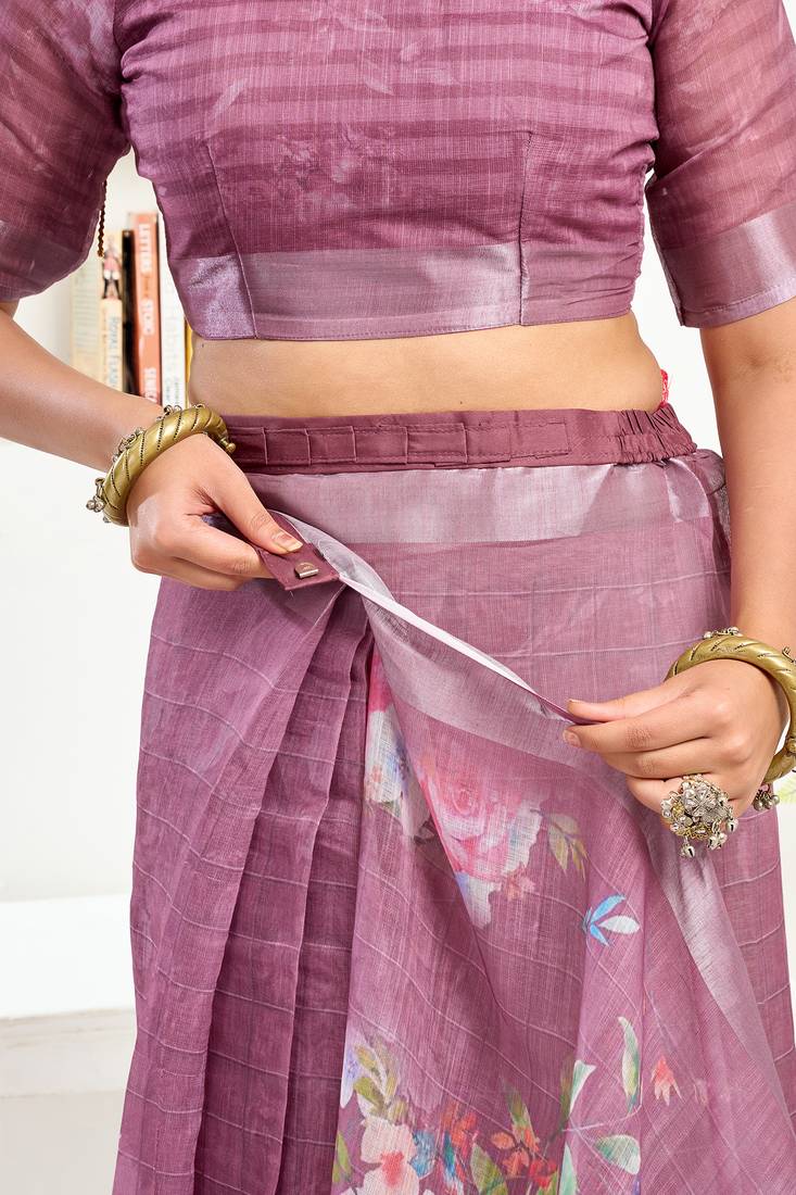 | Product Name | Dusty Wine Linen Floral & Striped Printed Ready To Wear Saree | |
