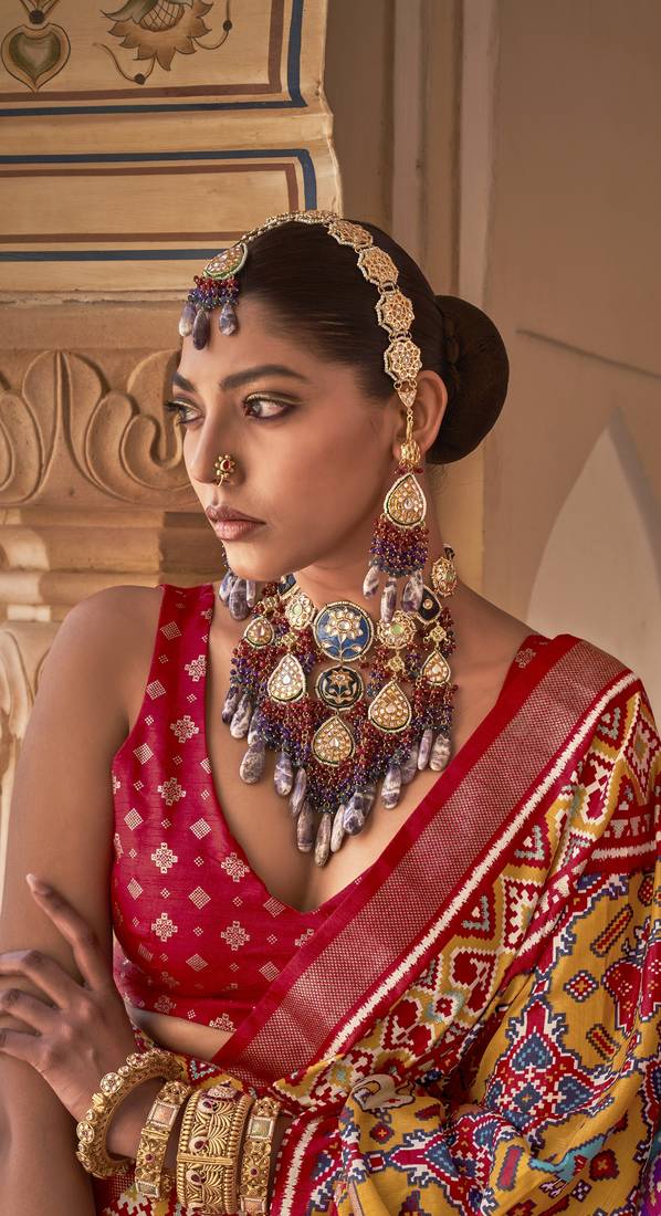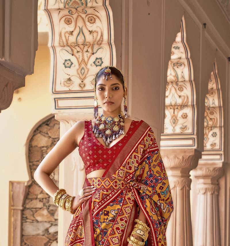 | Product Description | Elora Ethnic Wear Printed Patola Silk Saree For Women