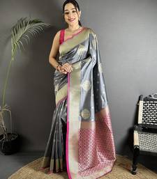 | Product Name | Elora Grey Soft Silk Blend Zari Woven Butti Banarasi Saree | |