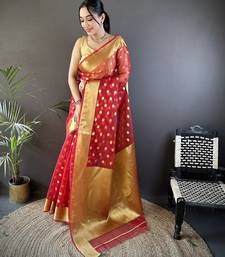 Elora red organza silk blend polka dot zari weaving banarasi saree