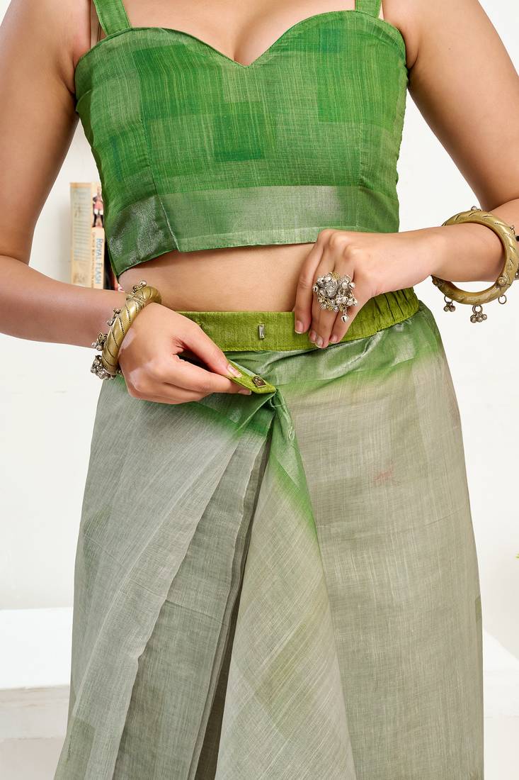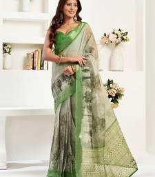 | Product Name | Green Linen Floral & Ethnic Motifs Printed Ready To Wear Saree | |