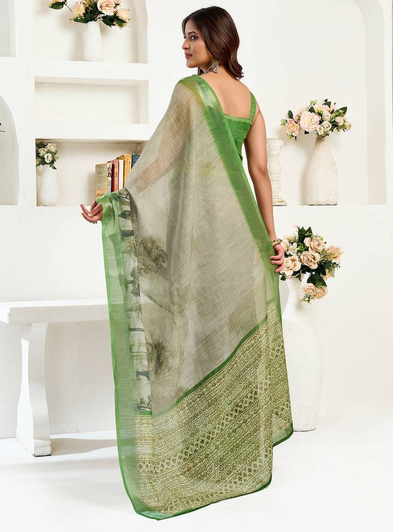| Product Description | Step Into Fresh Ethnic Glamour With The Dark Green Pure Linen Saree With Ethnic Digital Prints & Floral Motifs A Green Linen Floral & Ethnic Motifs Printed Ready‑To‑Wear Saree That’s Making Waves Across Mirraw’s Trending Women’s Ethnic Wear Searches! This Piece Blends Earthy Green Tones With Elegant Floral And Ethnic Motifs On Breathable Linen, Giving You The Ultimate Mix Of Comfort And Style. It’s One Of Those Top Ranking Saree Designs That Gets Clicks, Saves, And Compliments Wherever You Go Perfect For Trending Sarees Online And The Most Popular Ethnic Wear Collections Shoppers Are Hunting For.
