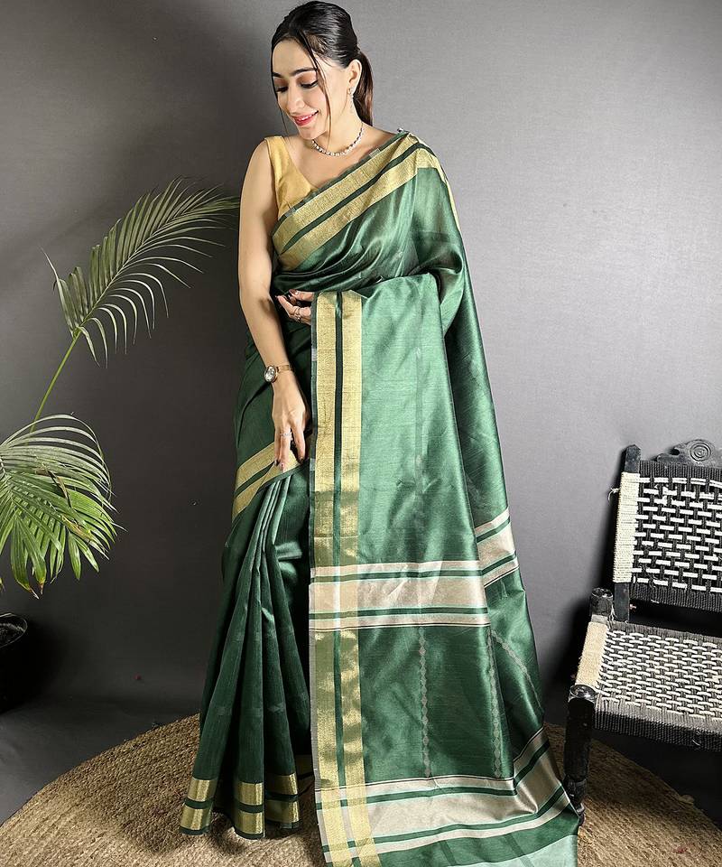 | Product Description | Bring A Refreshing Splash Of Color To Your Ethnic Wardrobe With The Green Raw Silk Zari Woven Ghicha Art Saree, A True Showstopper In Women’s Ethnic Wear. The Rich Green Silk, Adorned With Intricate Zari And Ghicha Weaving, Makes It One Of The Top‑Ranking And Most Popular Picks On Mirraw. Perfect For Weddings, Festivals, And Special Occasions, This Saree Combines Elegance And Flair, Instantly Making It A Bestseller Choice For Fashion Savvy Women.
