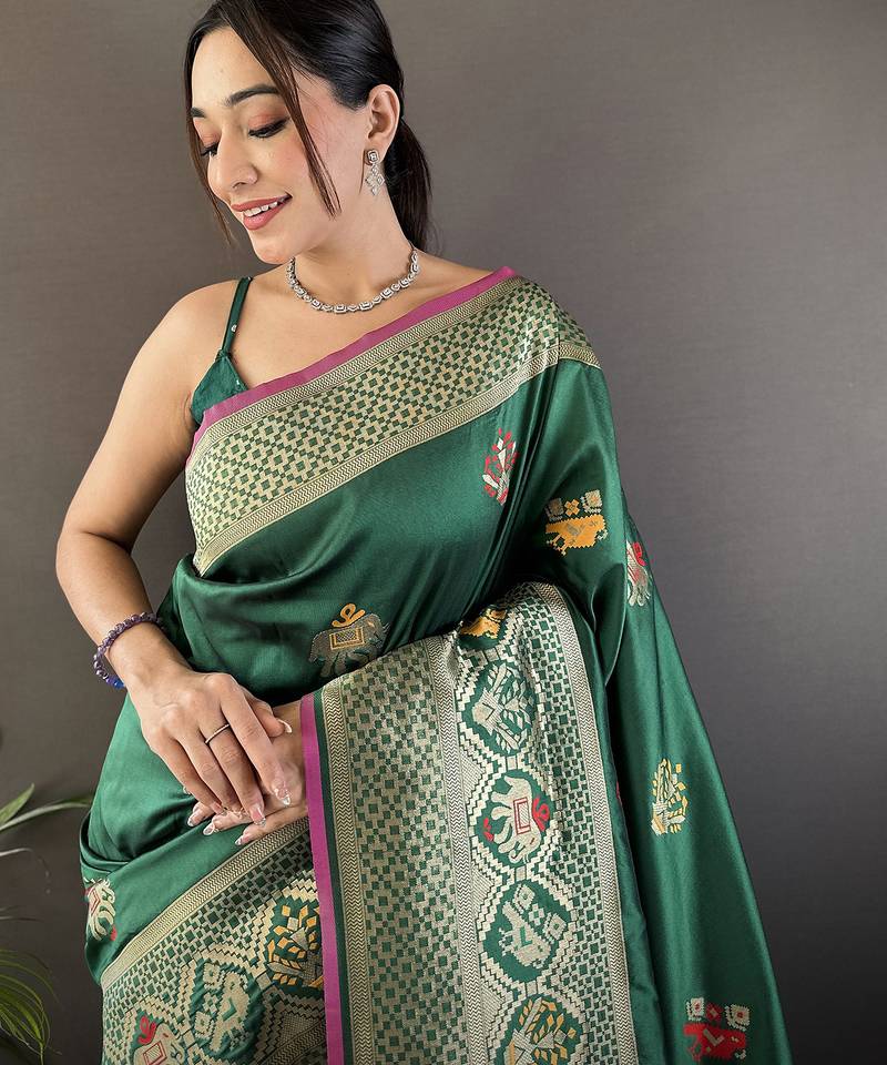 | Product Description | Embrace Timeless Elegance With This Green Soft Lichi Silk Banarasi Saree Featuring Graceful Elephant And Floral Minakari Motifs A Stunning Addition To Women’s Ethnic Wear That’s Turning Heads In Every Collection. With Its Rich Green Hue And Smooth Lichi Silk Drape, This Saree Stands Out As One Of The Top Trending, Most Popular Sarees Fashion Lovers Adore On Mirraw. A True Bestseller Product In Mirraw Designs & Styles, It’s Ideal For Festive Celebrations, Weddings, And Moments When You Want To Look Effortlessly Radiant.