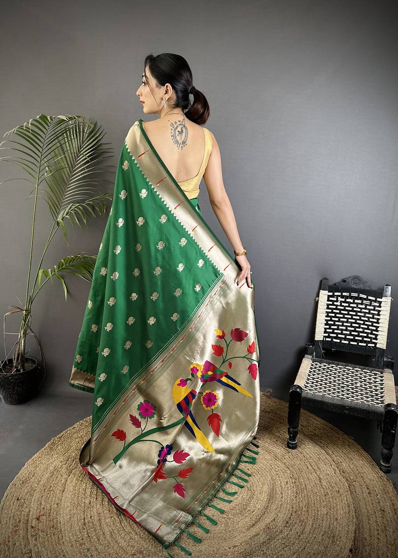 | Product Description | Wrap Yourself In Vibrant Elegance With The Green Soft Silk Peacock & Floral Zari Motifs Kanchipuram Saree A Trending Women’s Ethnic Wear Standout That’s Shining Bright On The Mirraw Home Page And Catching Everyone’s Eye. The Rich Green Hue Paired With Exquisite Peacock And Floral Zari Motifs Woven In Lustrous Soft Silk Creates A Look That Feels Both Timeless And Refreshingly Modern. It’s Quickly Become One Of The Most Popular Ethnic Styles For Festive Celebrations, Weddings, And Those Special Moments You Want To Cherish Forever.