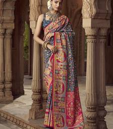 From Mirraw Designs & Styles, This Creation Brings The Perfect Mix Of Tradition And Trend. The Versatile Grey Palette Makes Accessorizing A Breeze, While The Patola Artistry Adds Depth And Culture To Your Outfit. Pair It With Statement Earrings Or A Sleek Clutch, And Watch Your Style Go Trending In Real Life And Online. A Saree Like This Doesn’t Just Join The Conversation It Leads It.
