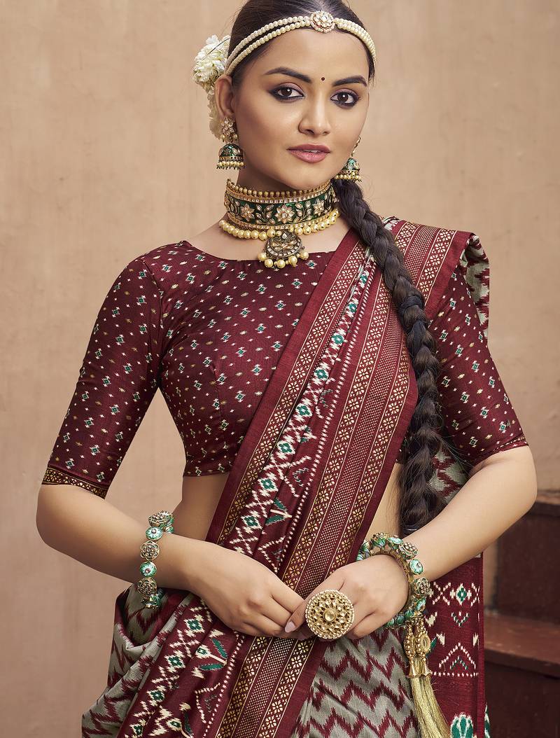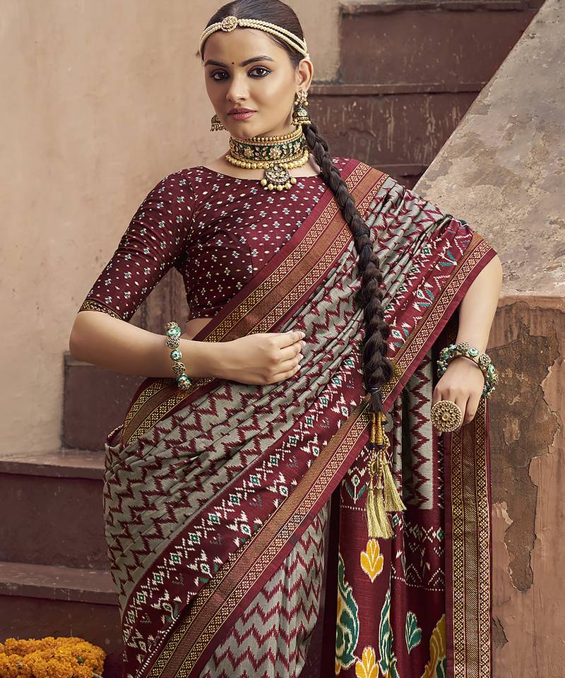 Product Name Grey Soft Silk Blend Ikkat Printed Patola Saree