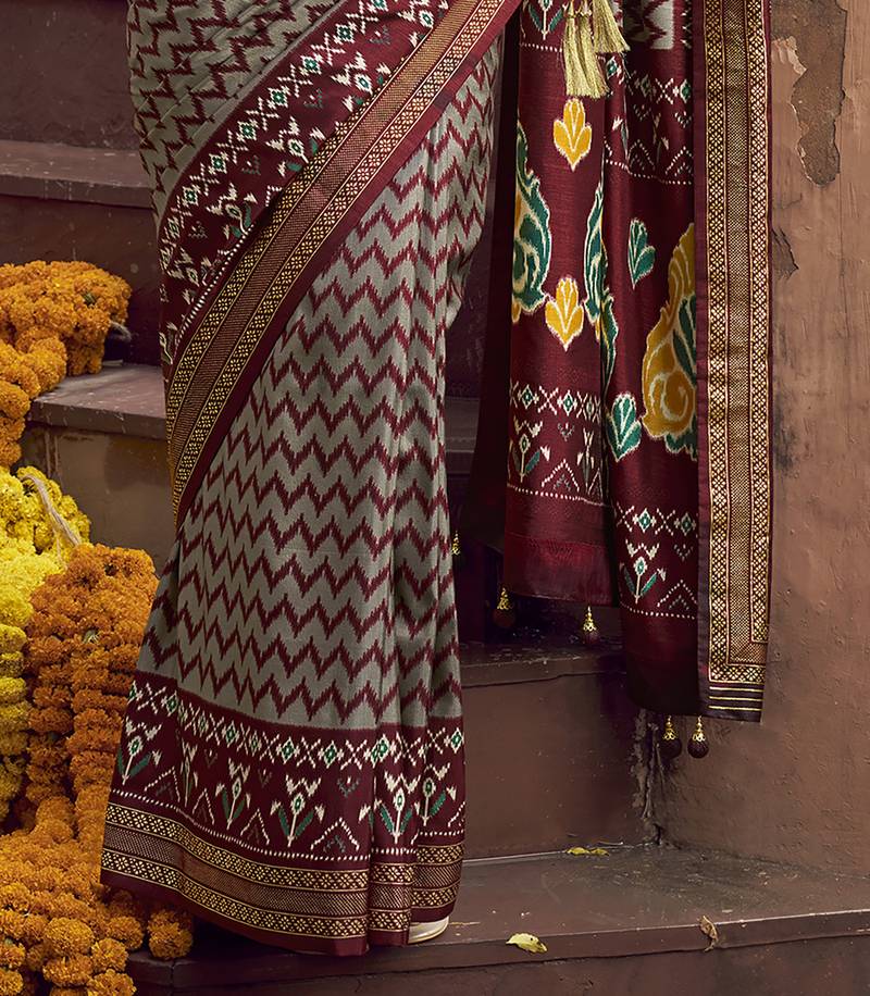 grey soft silk blend ikkat printed patola saree