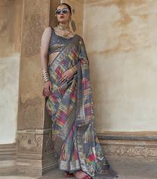 Grey soft silk blend woven patola printed saree