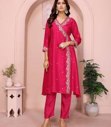 | Product Description | The Hot Pink Vichitra Silk Kurta Set Is Crafted From Luxurious, Soft Vichitra Silk, Making It Ideal For Festive Occasions, Office Events, Or Casual Gatherings. The Angrakha Style Kurta Offers A Flattering Fit That Gracefully Drapes The Body, Enhanced By A Chic V Neckline And Intricate Floral Embroidery For A Timeless, Elegant Look. This Set Includes A Comfortable Kurta And Coordinating Bottom, Offering Effortless Ethnic Style For Any Occasion. With An Inclusive Size Range, You Can Easily Find Your Perfect Fit. Fabric: Vichitra Silk (Soft & Luxurious)