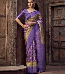 Lavender jacquard p v silk blend digital floral print zari weaving bollywood saree