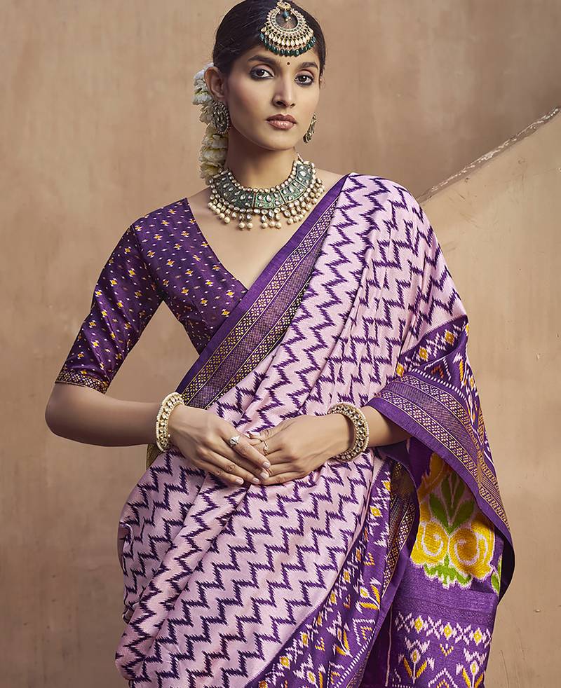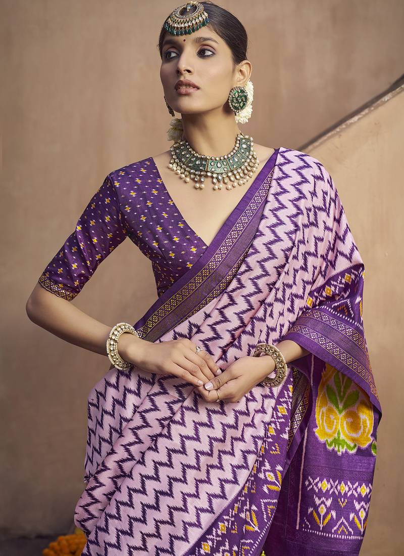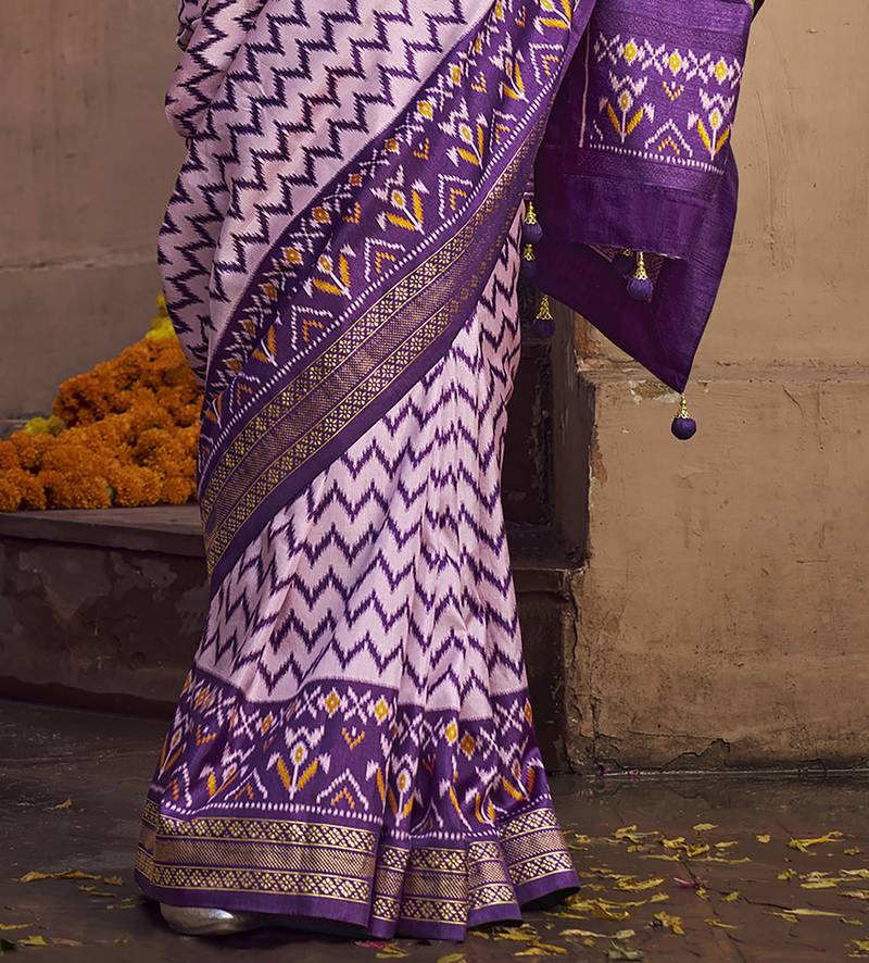 Lavender soft silk blend ikkat printed patola saree