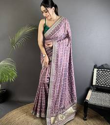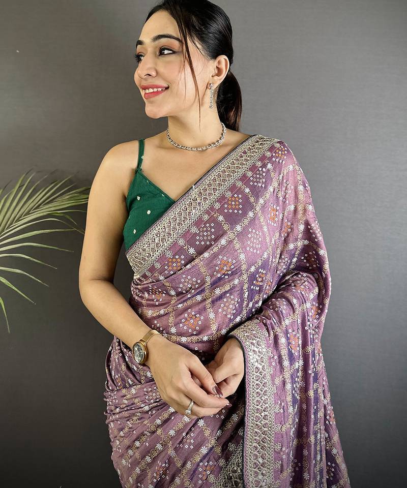 | Product Description | Lavender Vichitra Silk Bandhej Bandhani With Stone & Sequence Work Saree Will Be A Perfect Addition To Your Ethnic Collection. Sarees Are Designed In House By Master Weaver And Made In Best Quality Fabric. This Premium Designer Saree Is Sure To Add Oodles Of Grace And Vibrant Colours To Your Personality. This Trendy, Appealing And Eye Catching Saree Is Perfect For Day Wear And Evening Wear For Any Occasion.