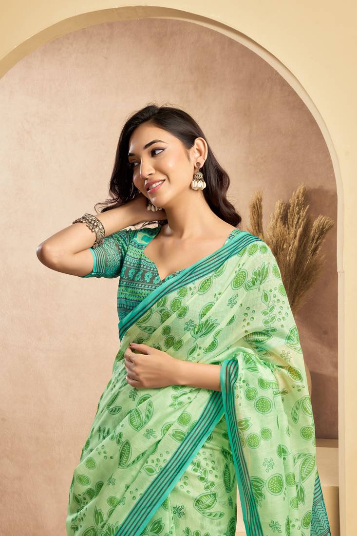 | Product Name | Light Green Linen Floral Motifs Printed Ready To Wear Saree | |