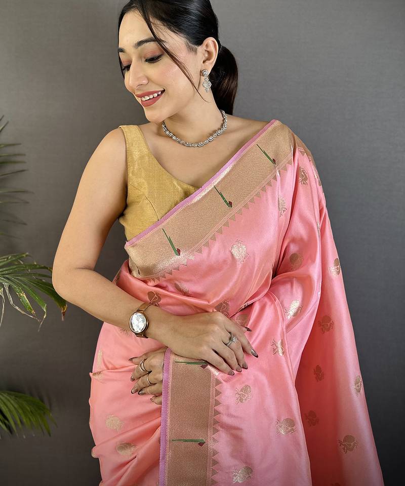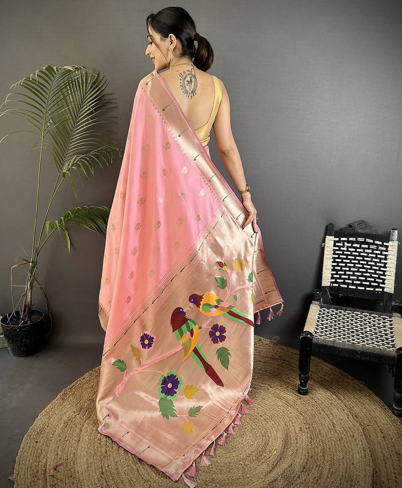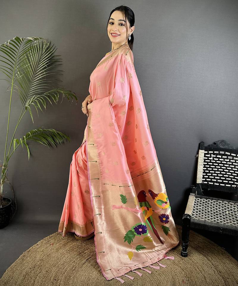 | Product Description | Wrap Yourself In Soft Elegance With The Light Pink Soft Silk Peacock & Floral Zari Motifs Kanchipuram Saree A Trending Women’s Ethnic Wear Favourite That’s Gracing The Mirraw Home Page And Winning Style Hearts Everywhere. The Delicate Light Pink Shade Pairs Beautifully With Intricate Peacock And Floral Zari Motifs, Creating A Look That Feels Romantic, Fresh, And Effortlessly Chic. It’s Already One Of The Most Popular Ethnic Styles, Perfect For Festive Occasions, Weddings, And Those Treasured Photo Moments Where You Want To Shine With Subtle Grace.