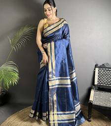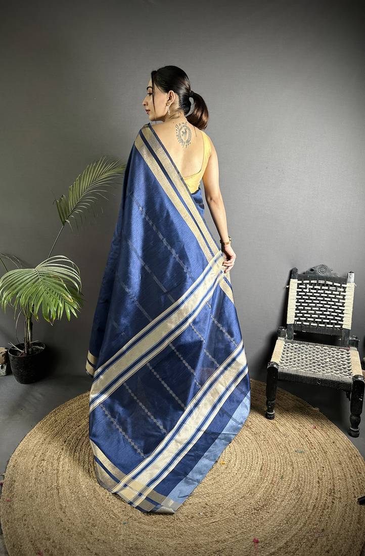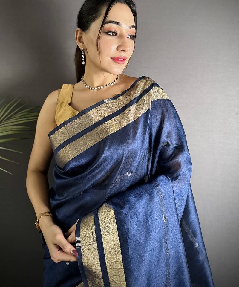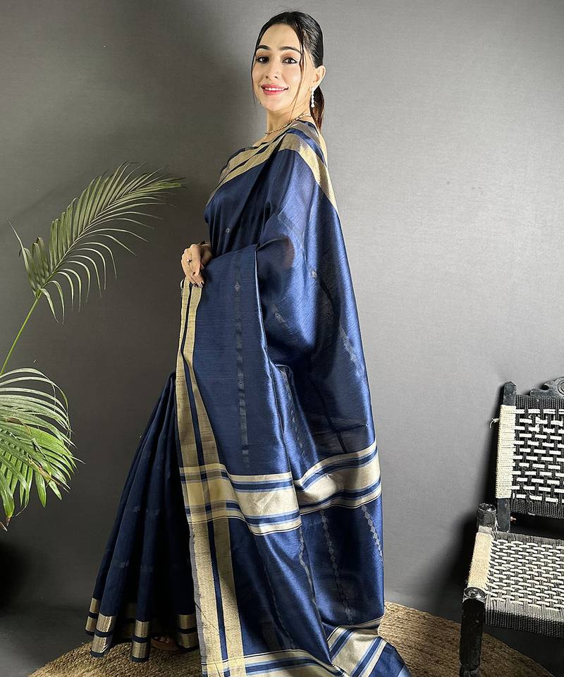 | Product Name | Navy Blue Raw Silk Blend Zari Woven Ghicha Art Saree | |