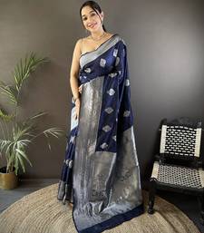 Navy blue soft silk blend floral motifs banarasi saree