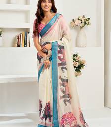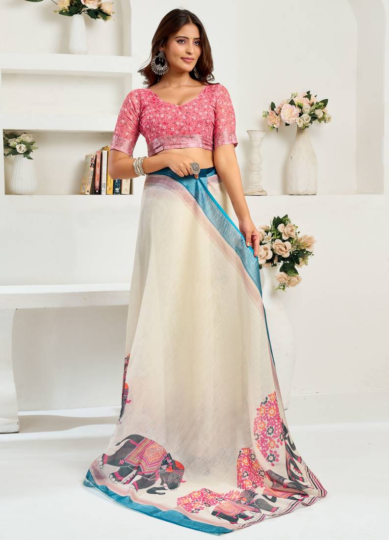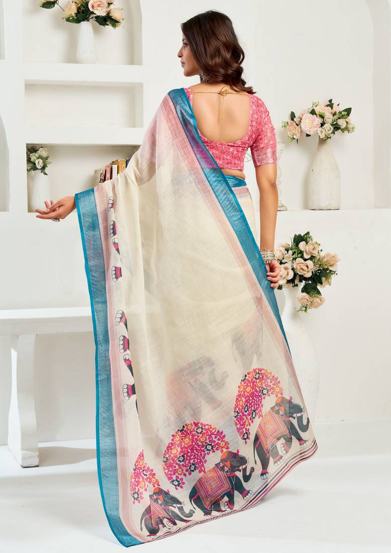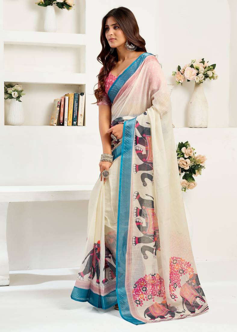 | Product Name | Off White Linen Elephant Motifs Printed Ready To Wear Saree | |