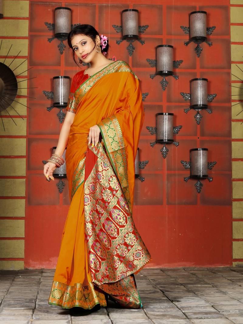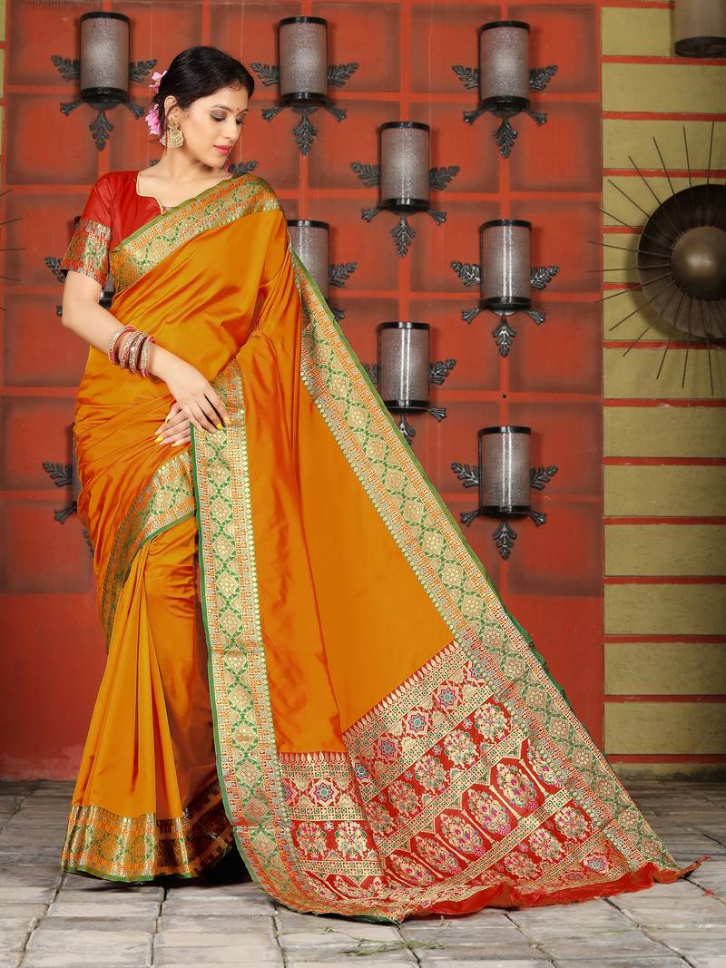| Product Name | Orange Banarasi Plain Heavy Bordered Designer Saree For | |