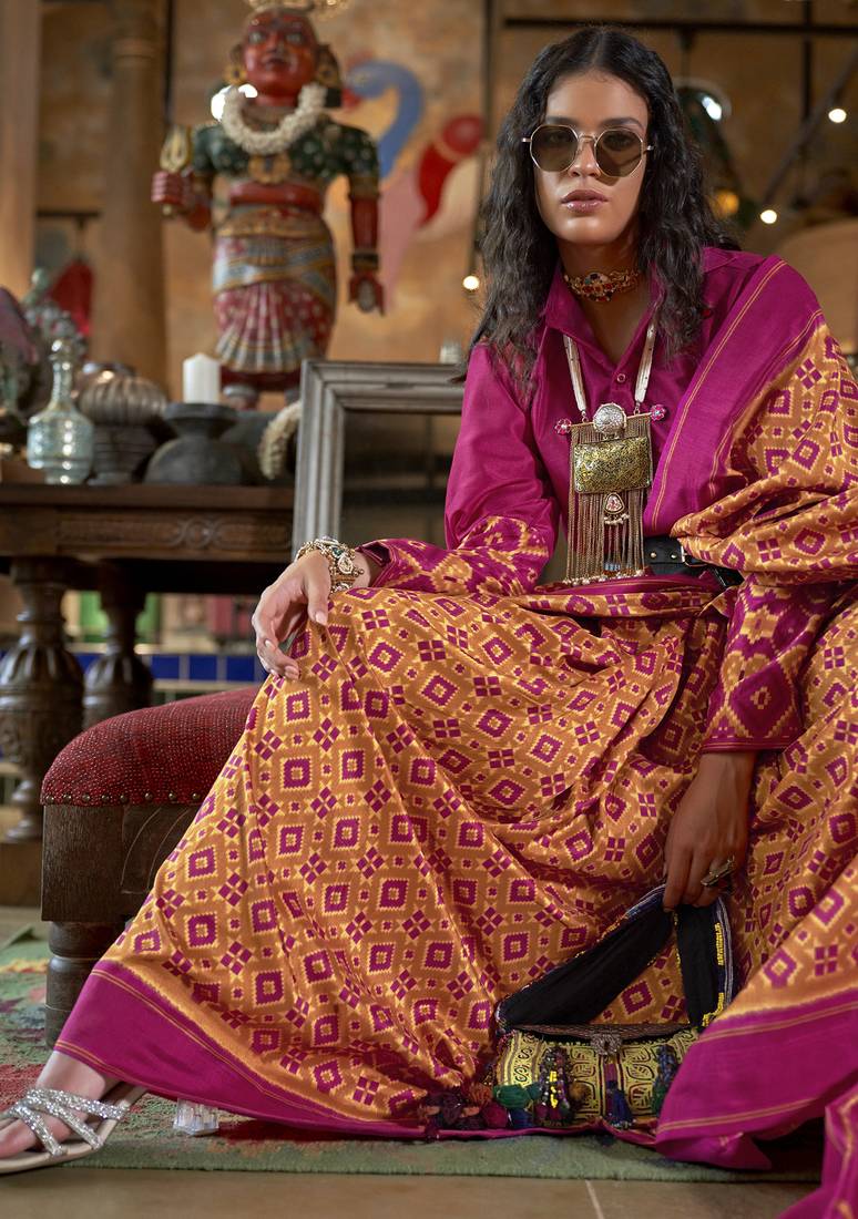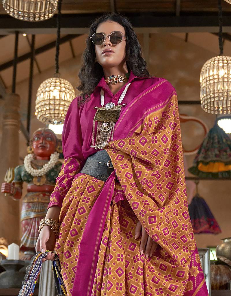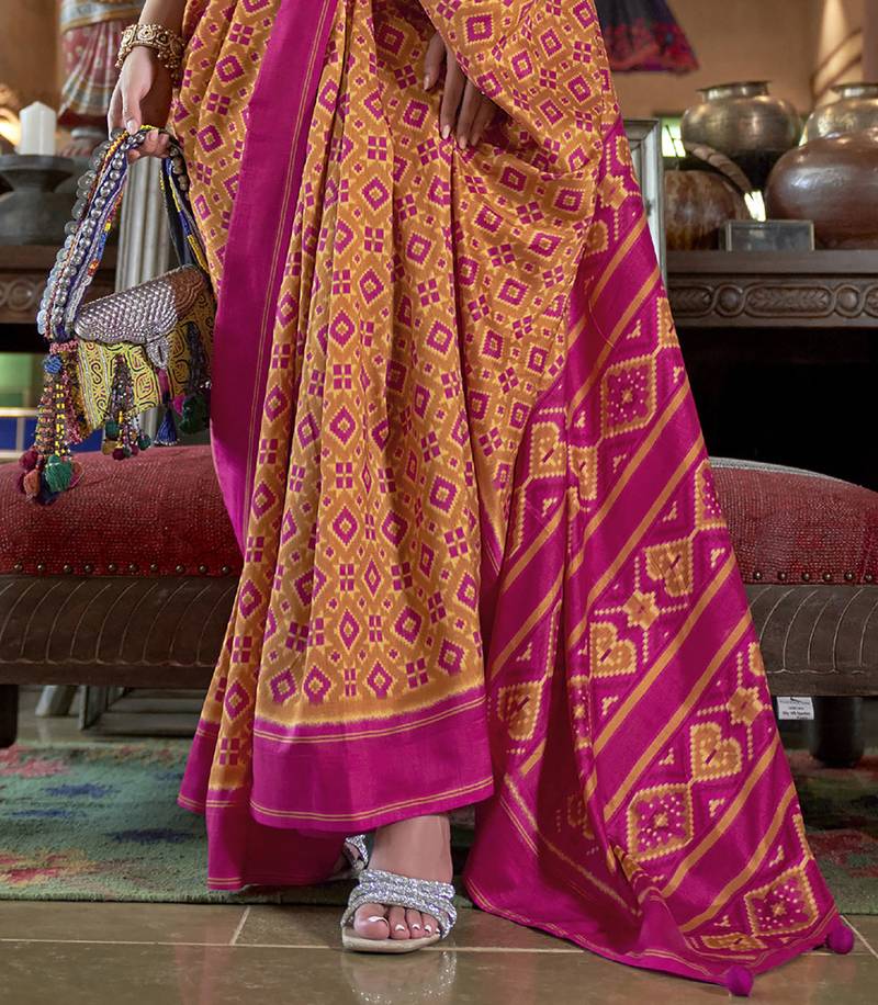 | Product Name | Orange Soft Silk Blend Ikkat Printed Patola Saree | |