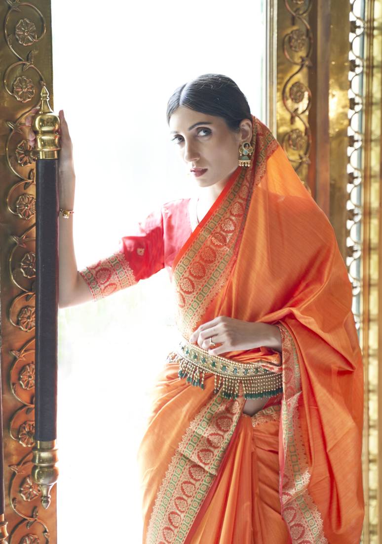 Make A Style Statement This Season & Look Stunning In This Latest Beautifully Designed Saree From 'aurima'. Each Piece Is Elegantly Crafted With Love And Will Surely Add To Your Wardrobe. Pair This Piece With Heels Or Flats For A Graceful Look.