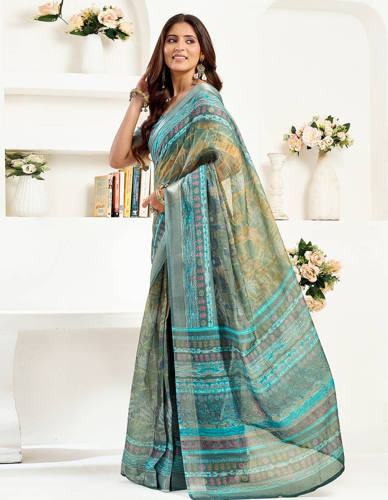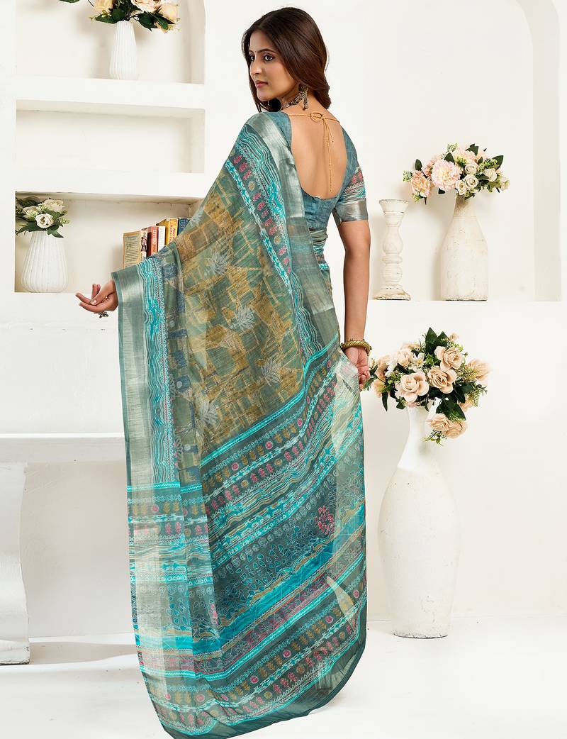 | Product Name | Petrol Linen Ethinic Motifs Printed Ready To Wear Saree | |
