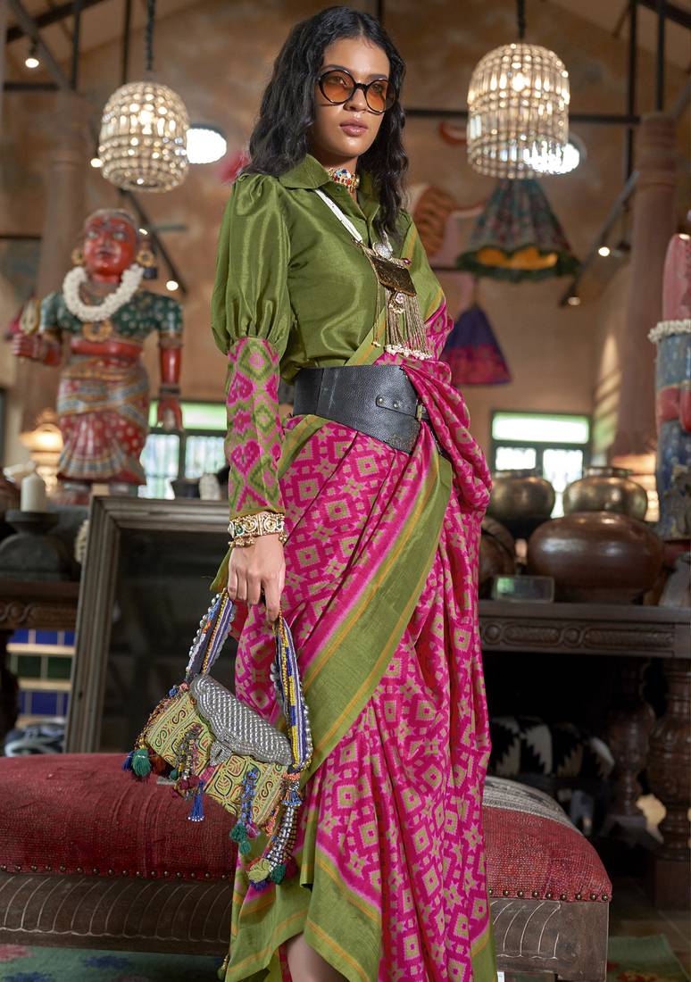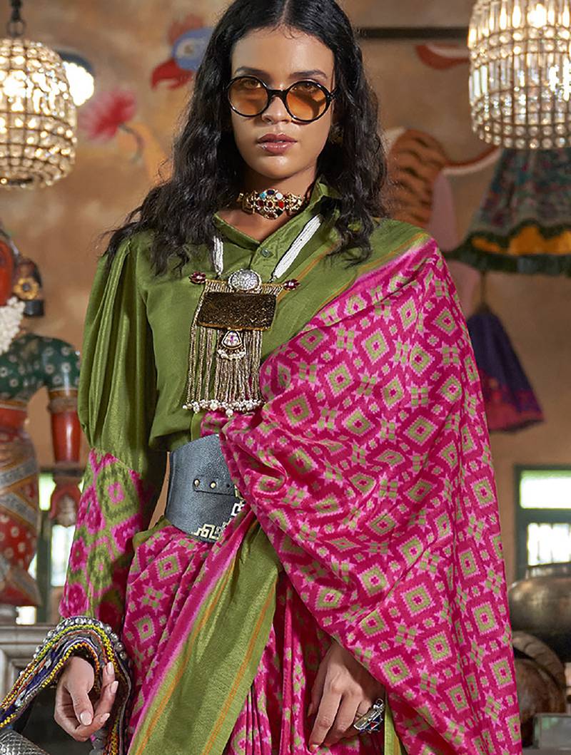 | Product Name | Pink Soft Silk Blend Ikkat Printed Patola Saree | |