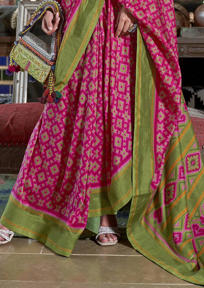 | Product Description | Celebrate Elegance In Its Brightest Form With The Pink Soft Silk Ikkat Printed Patola Saree A Stunning Blend Of Tradition And Trend. The Soft Pink Colour, Rich Silk Sheen And Classic Ikkat Artistry Come Together To Create A Style That Stands Tall Among Mirraw’s Top Ranking Ethnic Wear Picks. It’s The Perfect Saree For Women Who Love Outfits That Look Festive, Feel Comfortable And Make Every Moment Special.