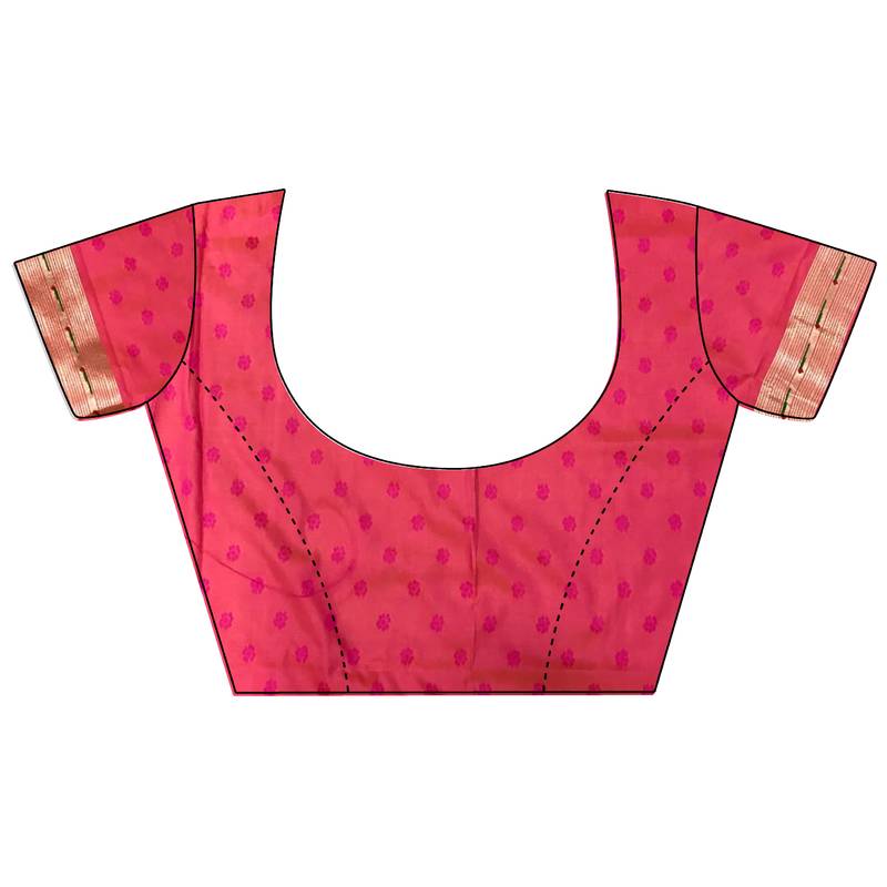 | Product Name | Pink Soft Silk Blend Peacock & Floral Zari Motifs Kanchipuram Saree | |