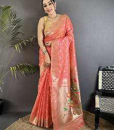 | Product Name | Pink Tissue Parrot & Floral Woven Design Paithani Saree | |