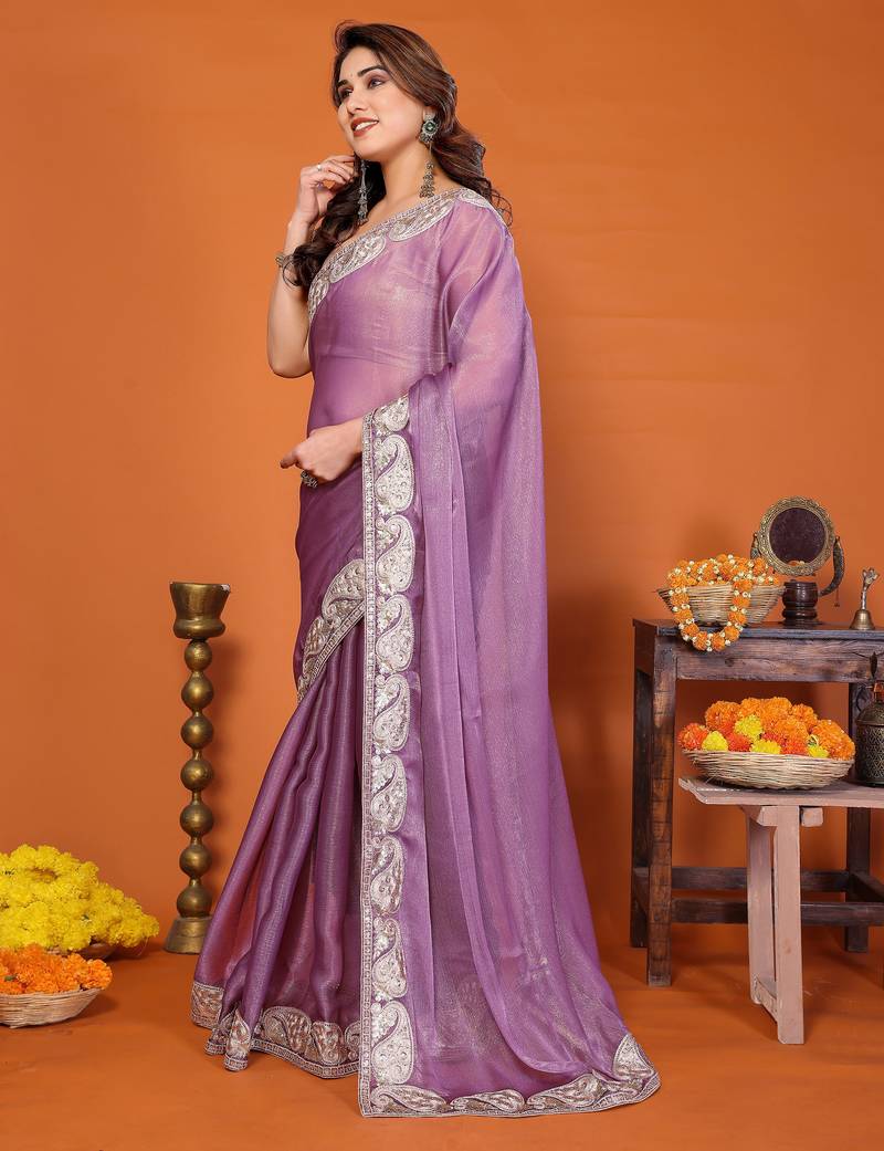| Product Name | Purple Chiffon Solid Zari Embroidery Saree With Sequin & Stone Embroidery Border | |