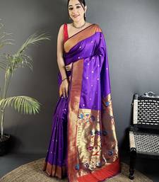 Purple lichi silk blend peacock motifs zari weaving paithani saree