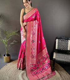 Rani pink soft lichi silk blend elephant & floral motifs minakari work banarasi saree