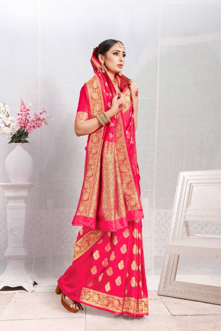 | • | Saree | : | Color- Rani Pink / Fabric- Silk Blend |